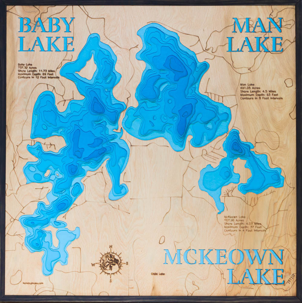 A 3D map of Baby, Man, and McKeown is a timeless tribute to its beauty. These maps are great decor pieces and thoughtful gifts, showcasing the lake's unique contours in incredible detail.