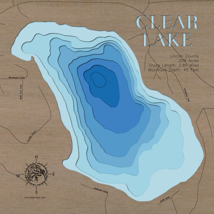 Visitors to Clear Lake in Lincoln County, WI can enjoy activities like fishing, boating, and hiking. This 3D lake map is not just decor but a piece of art that brings memories of your cabin or lakeside retreat into your home.