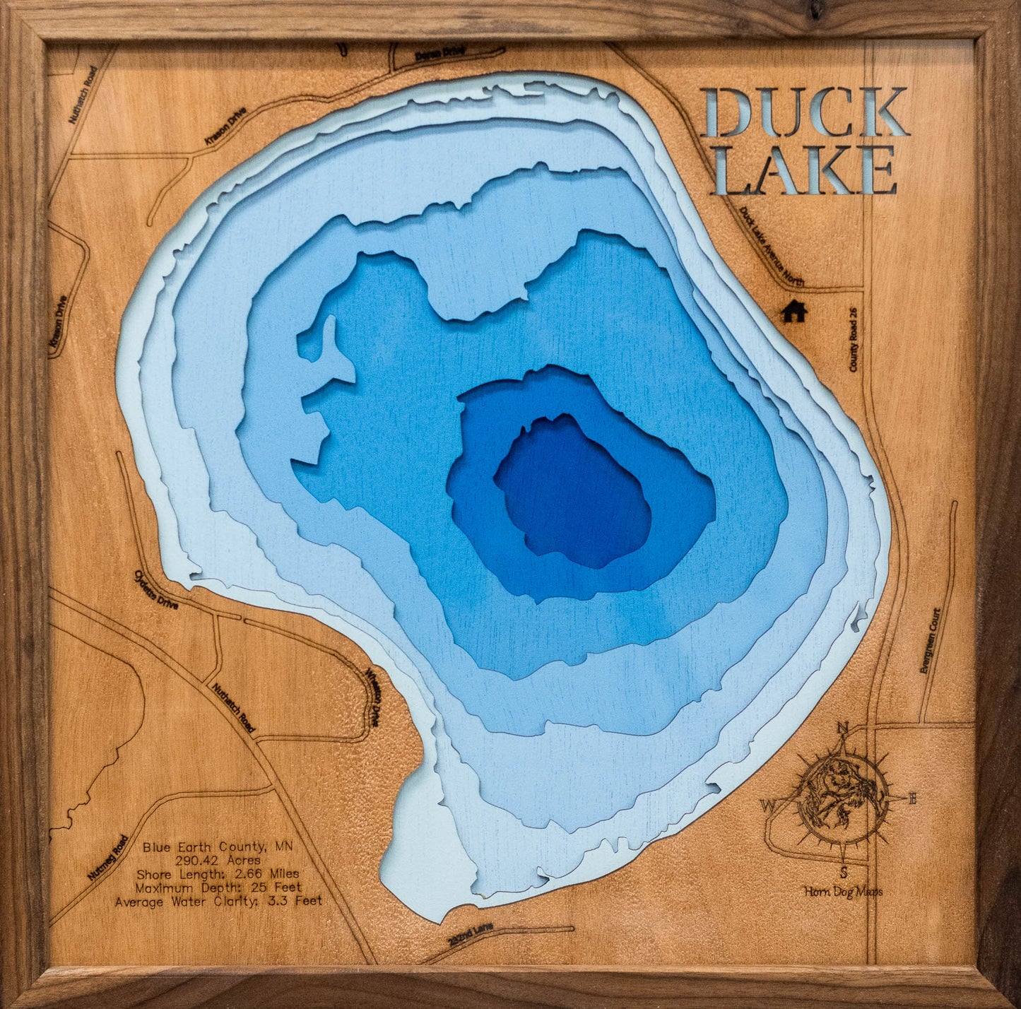 Capture its essence with a detailed 3D map, a striking decor piece for your cabin or home. These maps beautifully highlight the lake's depth and contours, making them ideal gifts for lake lovers.