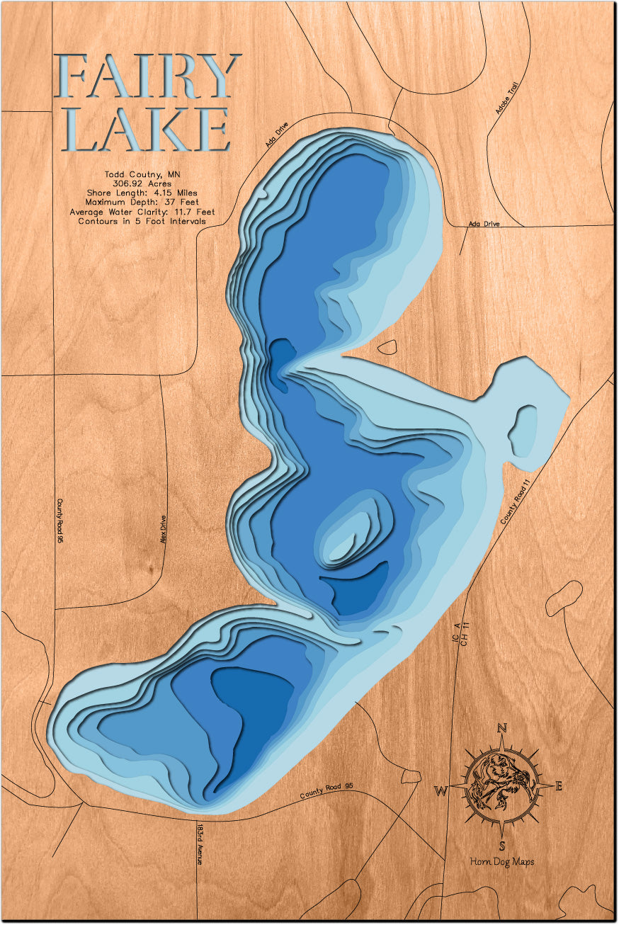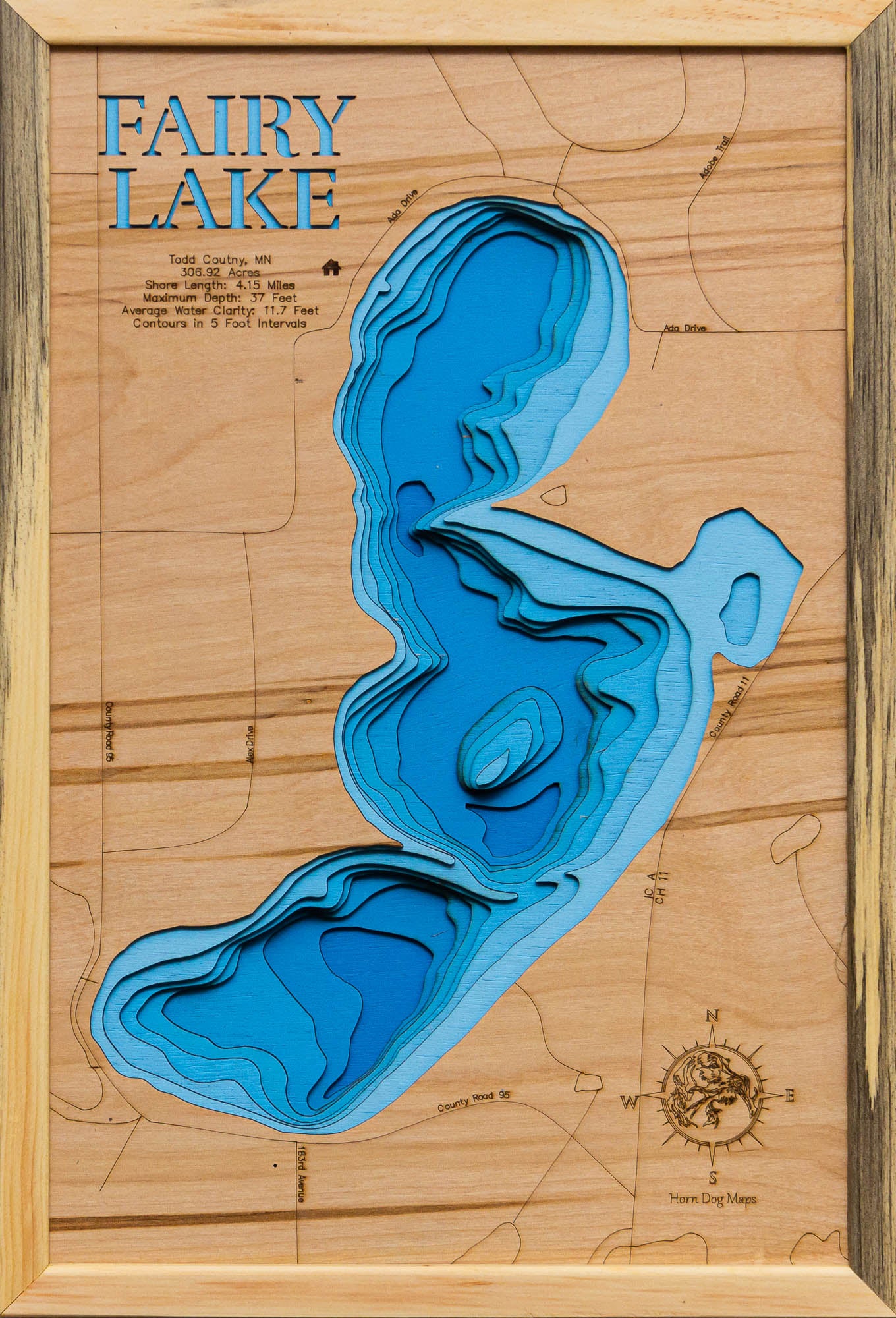 Capture the magic of Fairy Lake Todd in County, MN with this detailed 3D lake map. It’s a stunning way to transform your cabin or home into a lakeside retreat.