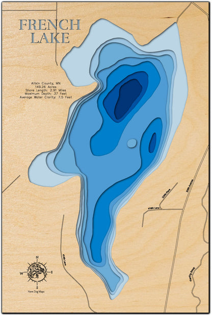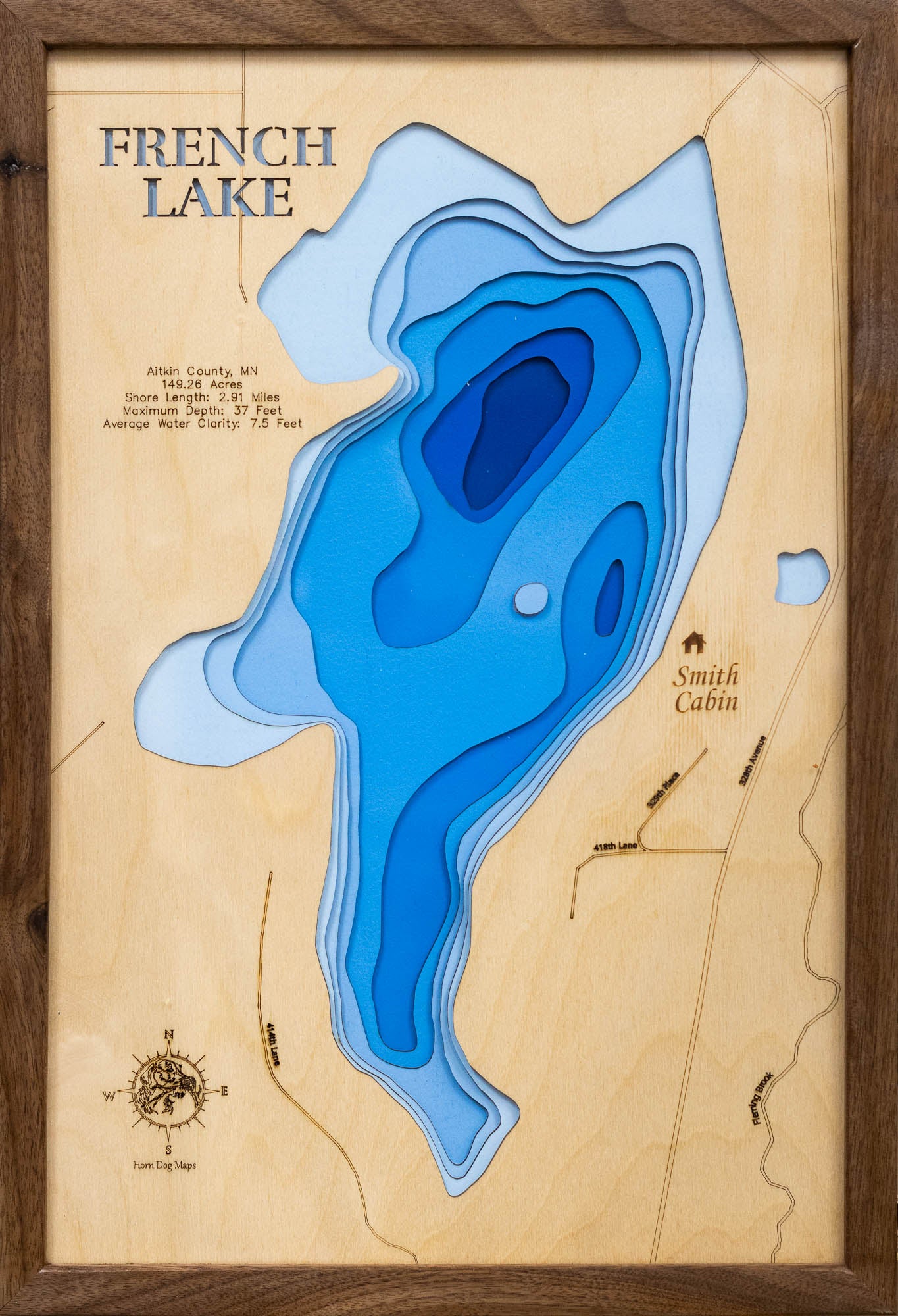 Preserve the charm of French Lake in Aitkin County, MN with this beautifully detailed 3D lake map. It’s a wonderful addition to any cabin or nature-inspired space.