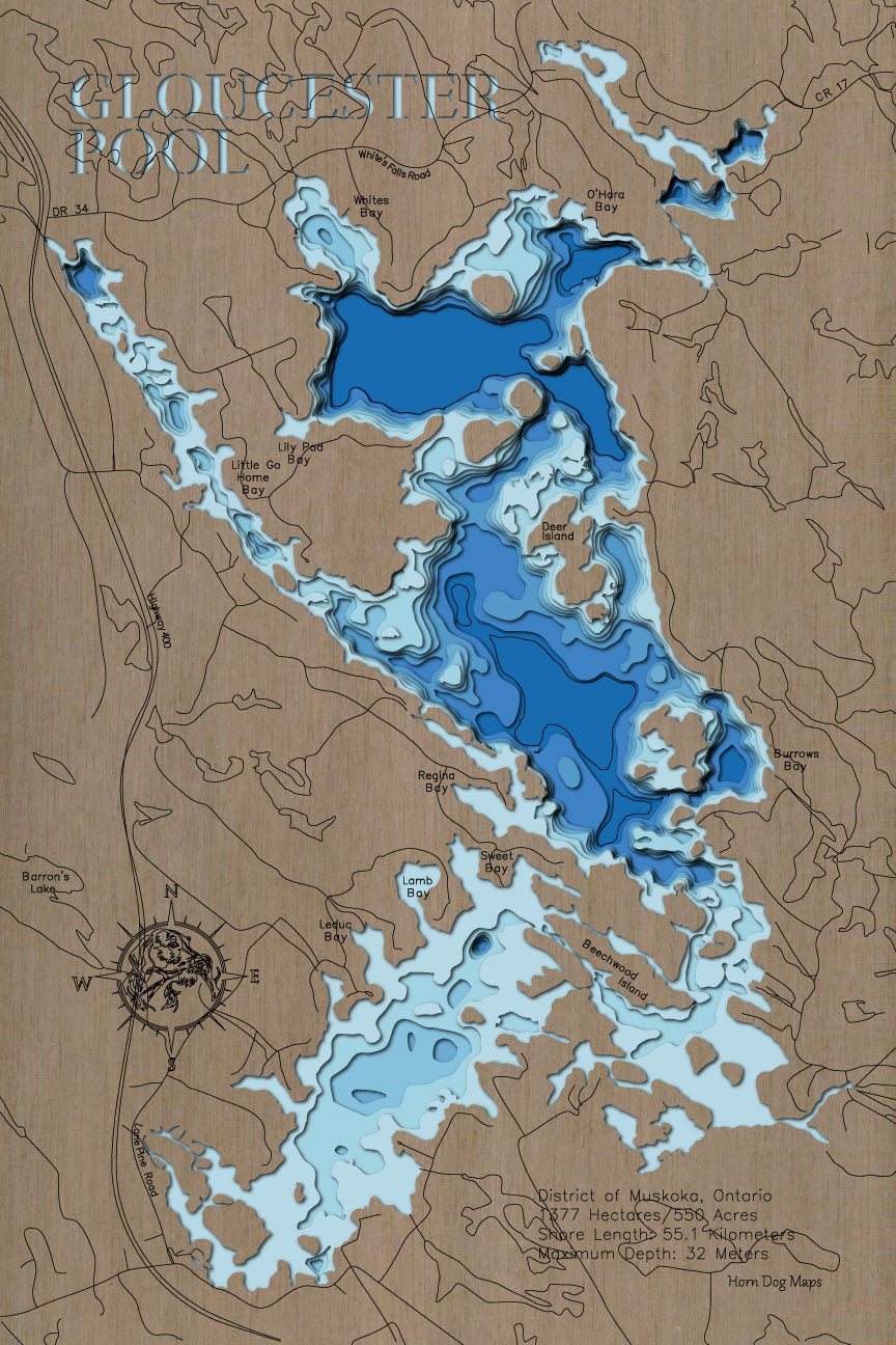 This 3D lake map brings the essence of Gloucester Pool in Ontario, Canada into your living space. It’s a perfect blend of art and decor, capturing the memories of your cabin or lakeside adventures.