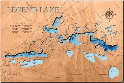 Enhance your home or cabin with this stunning 3D lake map of Legend Lake in Menominee County, WI. It’s a beautiful way to keep your lakeside memories alive.