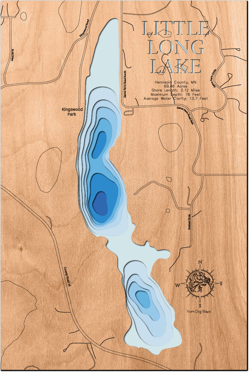 This 3D lake map transforms your memories of Little Long Lake in Hennepin County, MN into an artistic centerpiece. It’s perfect for enhancing your cabin or home’s decor.