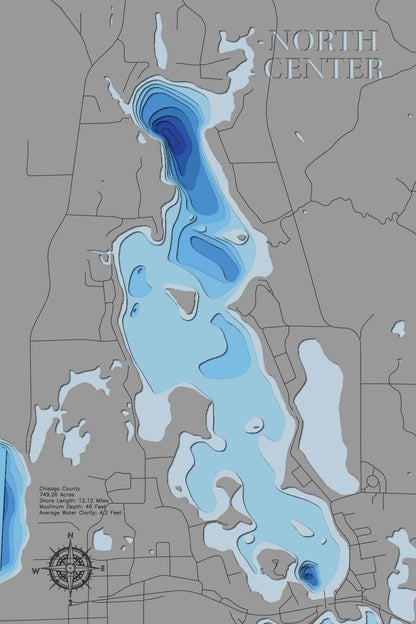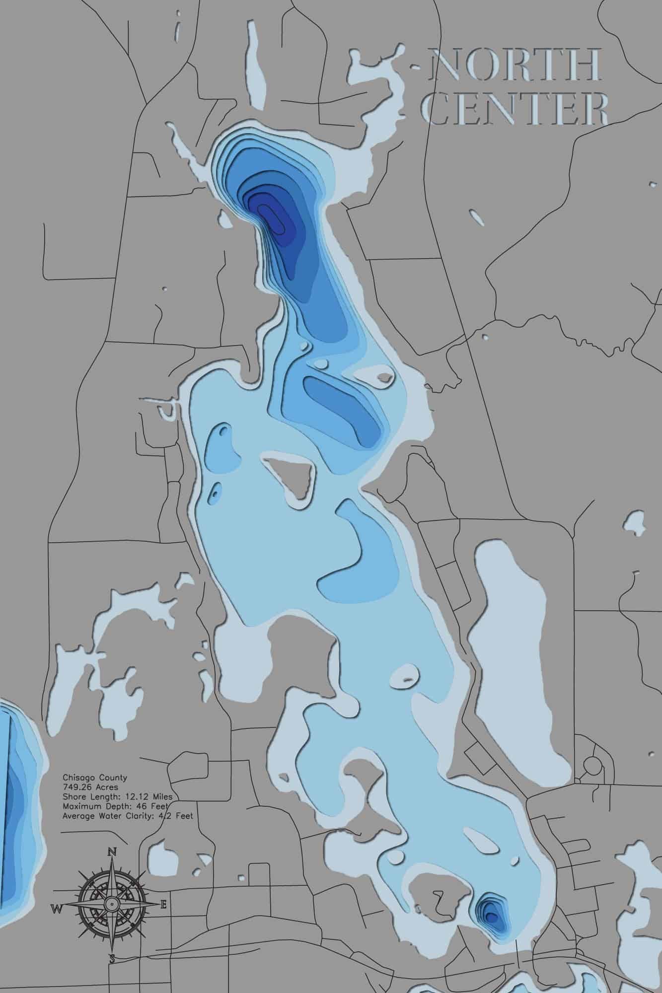 From fishing and kayaking to serene hikes along its shores, North Center (Chisago) - horn-dog-maps offers endless opportunities for enjoyment. This detailed 3D lake map brings the essence of the lake into your home as decor and art, making it perfect for your cabin or living space.