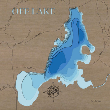 Visitors to Off Lake in Ontario, Canada can enjoy activities like fishing, boating, and hiking. This 3D lake map is not just decor but a piece of art that brings memories of your cabin or lakeside retreat into your home.
