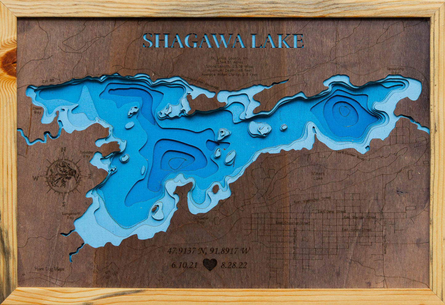 Shagawa Lake, a picturesque 2,344-acre natural lake, is a cherished natural gem nestled in St. Louis County, northeastern Minnesota, adjacent to the city of Ely. This beautiful Minnesota lake, boasting a shoreline of 23.39 miles, offers a tranquil and scenic environment at the gateway to the Boundary Waters Canoe Area Wilderness. With a maximum depth of 48 feet, Shagawa Lake is known for its clear, bog-stained waters and diverse ecosystem, making it a beloved destination for both recreation and environmental appreciation.