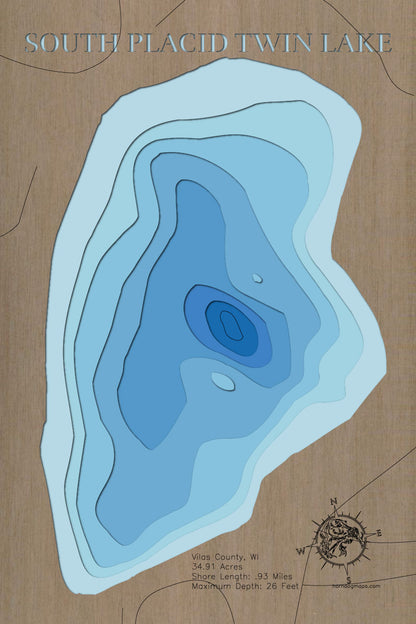 Let this 3D lake map bring the peaceful vibes of South Placid Twin Lake in Vilas County, WI into your home. It’s an elegant piece of decor that honors your favorite lake.