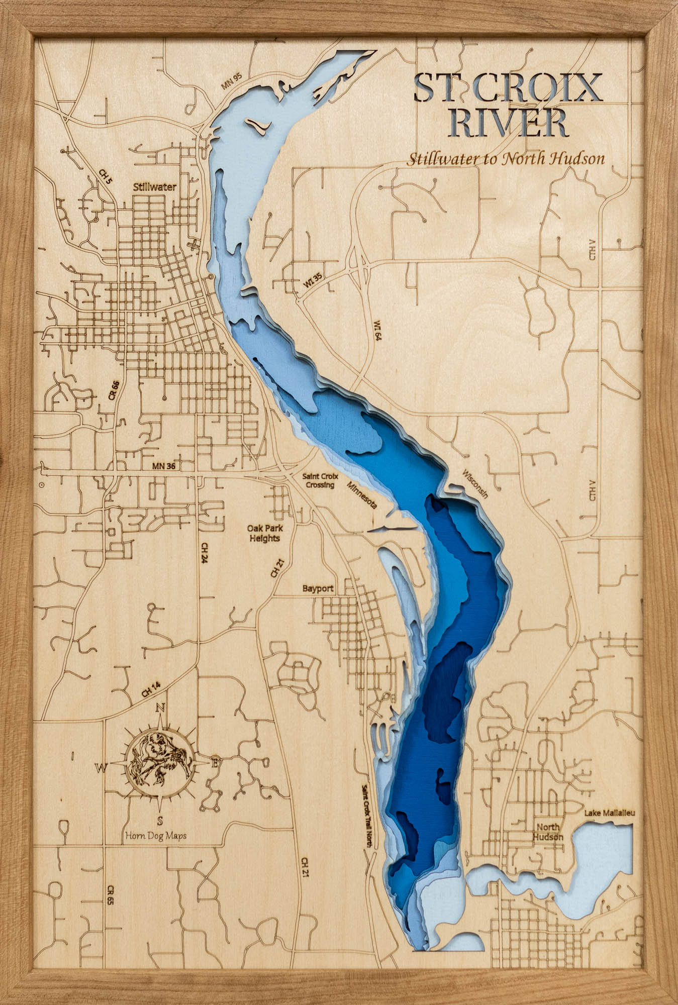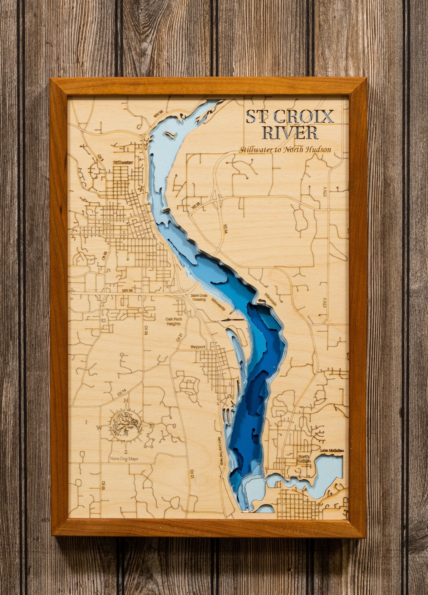 This unique 3D lake map of St. Croix River in Minnesota and Wisconsin brings together art and functionality. It’s the ideal decor for anyone who cherishes their time at the lake.